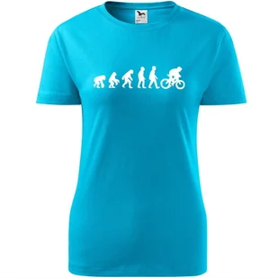 Damska Koszulka z Nadrukiem Rowerowa Ewolucja Rower Prezent dla Rowerzystki turkusowy XXL ❤️ O koszulce Damskiej 100 % ekologicznej bawełny wzmocnienie na r...