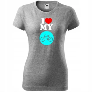 Damska Koszulka z Nadrukiem Rowerowa I love my bike Prezent dla Rowerzystki ciemnoszary melanż L