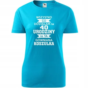 Damska Koszulka z Nadrukiem Wszystko co dostałam na 40 urodziny na Prezent turkusowy XXL ❤️ O koszulce Damskiej 100 % ekologicznej bawełny wzmocnienie na ra...