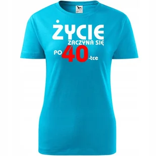 Damska Koszulka z Nadrukiem Życie zaczyna się po 40 na Prezent Urodzinowy turkusowy XL ❤️ O koszulce Damskiej 100 % ekologicznej bawełny wzmocnienie na rami...