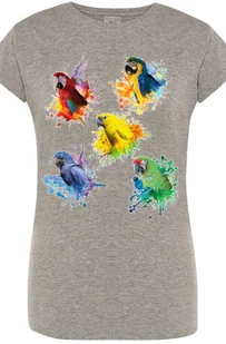 Damski Modny T-shirt Papugi Kolorowe Lato Rozm.M