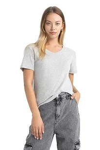 DeFacto Damska koszulka z dekoltem w serek – klasyczna koszulka basic dla kobiet – wygodna koszulka dla kobiet, szary melanż, XL