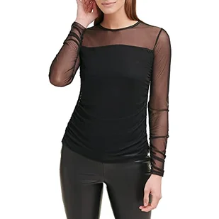 DKNY Women's Long Sleeve Crew Neck Mesh Top, czarna, M, czarny