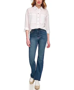 DKNY Women's Long Sleeve Roll Tab High Low Top, White, M, biały, M