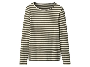 esmara® Koszulka damska z bawełną z długim rękawem (Oliwkowy/ biały, S(36/38))