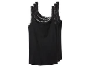 esmara® Podkoszulki damskie z bawełną, 3 sztuki Opis produktu wspieramy zrównoważoną uprawę bawełny w Afryce przyjemny komfort noszenia dzięki wysokiej zawartości bawełny prążkowane wysokiej jakości wykonanie z elegancką koronką optymalne dopasowanie dzięki elastanowi Lycra® 3 sztuki Cechy produktu table{width:100%;}td{padding-right: 30px; padding: 0.5rem; border-bottom: 0.0625rem solid #e3e4e5;} tr: nth-child(odd) {background-color: #F2F3F4;} Kolor: czarny; granatowy/ciemnoszary/jasnoszary; różowy/stary róż/biały Wzór: nie Szczegóły: jakość prążkowana, koronka Krój: