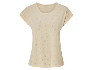 esmara® T-shirt damski z ażurowym haftem Opis produktu wykonana z materiału pochodzącego z recyklingu luźny krój z ażurowym haftem optymalne dopasowanie dzięki elastanowi Lycra® Cechy produktu table{width:100%;}td{padding-right: 30px; padding: 0.5rem; border-bottom: 0.0625rem solid #e3e4e5;} tr: nth-child(odd) {background-color: #F2F3F4;} Kolor: beżowy, brązowy, biały Szczegóły: z ażurowym haftem Krój: luźny krój Dekolt: