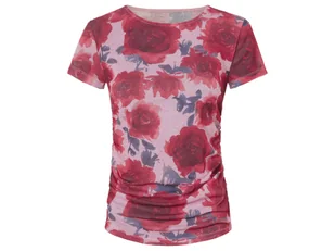 esmara® T-shirt damski z tkaniny mesh (różowy/czerwony, XS (32/34))