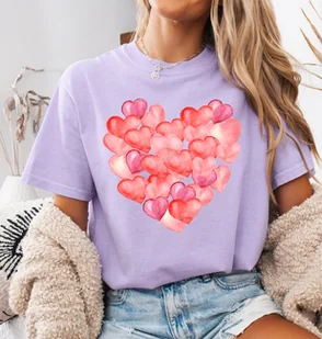 Fiołkowa damska koszulka z sercem w kwiaty