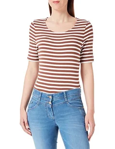 GANT Damska koszulka w paski 1X1 Rib LSS, Mahogany Brown, standardowa, brązowy, M