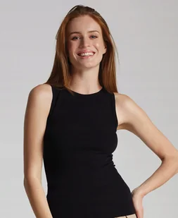 Koszulka-TANK TOP czarna r.XL - z szerokimi ramiączkami, klasyczna, uniwersalna, jako bielizna, jako top wierzchni, elegancka, gładka, głęboki dekolt