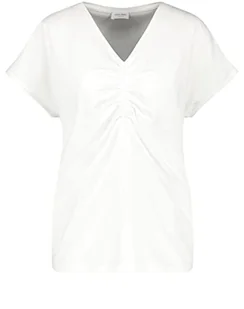 Gerry Weber Damska koszulka z marszczonym detalem, z krótkim rękawem, rękaw 1/2, koszulka z półrękawami jednokolorowa, off-white, 40