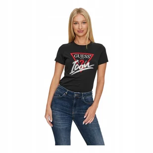 GUESS KOSZULKA DAMSKA T-SHIRT SS CN ICON TEE CZARNA r.M