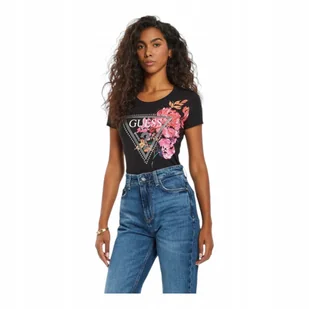 Guess Koszulka Damska T-Shirt Ss Cn Triangle Peony Czarna R.S
