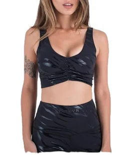 Hurley Top sportowy damski - Tigris dekolt w serek, czarny, wielokolorowy
