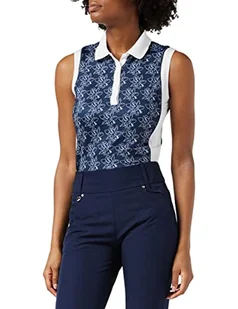 Island Green Damska frezja kwiatowy nadruk odprowadzająca powietrze koszulka polo bez rękawów top koszulka golfowa Granatowy/biały S