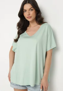 Jasnozielony T-shirt z Wiskozą o Kroju Nietoperza Liosma