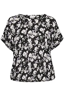 KAFFE Damska koszulka z nadrukiem KAFFE Wing Sleeves, Black-Chalk/fioletowy kwiat, 40