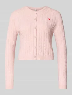 Kardigan damski Only;Model ‘Katia’;Efekt: jednolity kolor, imitacja dzianiny;Krój: Krój shaped fit ;Zapięcie: jednorzędowa listwa guzikowa;Wzór: Ścieg warkoczowy;Aplikacja: