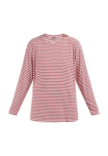 kilata Damska koszulka w paski 35325628-KI02, czerwona wełna biała, S, Czerwony, wełniany biały, S