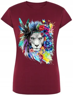 Kolorowy Lew Damski T-shirt Modny Nadruk Rozm.L