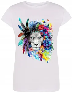 Kolorowy Lew Damski T-shirt Modny Nadruk Rozm.XL