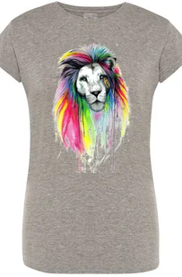 Kolorowy Lew Damski T-shirt Modny Nadruk Rozm.XL