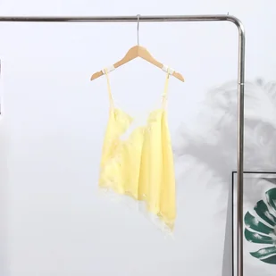 Koronkowy damski top na ramiączkach - Żółty M