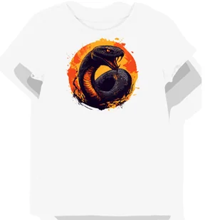 Koszulka damska biała z grafiką ognistej kobry w mgle S - Koszulka damska idealna na prezent! KozakNadruki – Polska marka i autorskie projekty! Stawiając na ...