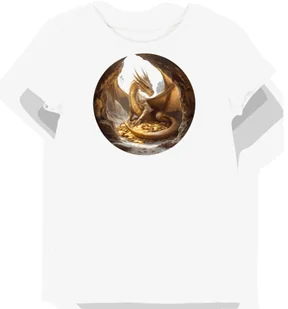 Koszulka damska biała z motywem smoka i złota XL - Koszulka damska idealna na prezent! KozakNadruki – Polska marka i autorskie projekty! Stawiając na KozakNa...