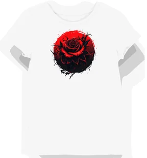 Koszulka damska biała z nadrukiem czerwonej róży XS - Koszulka damska idealna na prezent! KozakNadruki – Polska marka i autorskie projekty! Stawiając na Koza...