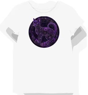 Koszulka damska biała z nadrukiem fioletowego kota S - Koszulka damska idealna na prezent! KozakNadruki – Polska marka i autorskie projekty! Stawiając na Koz...