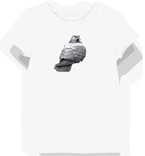 Koszulka damska biała z nadrukiem gołębich piór w szarości XXL - Koszulka damska idealna na prezent! KozakNadruki – Polska marka i autorskie projekty! Stawia...