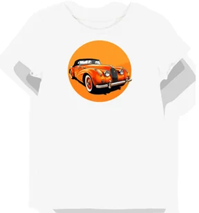Koszulka damska biała z nadrukiem klasycznego pomarańczowego kabrioletu M - Koszulka damska idealna na prezent! KozakNadruki – Polska marka i autorskie proje...