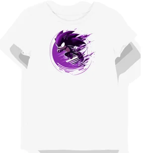 Koszulka damska biała z nadrukiem szybkiego fioletowego jeża S