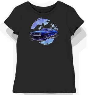 Koszulka damska czarna z eleganckim motywem klasycznego samochodu S