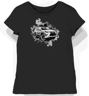 Koszulka damska czarna z futurystycznym SUV-em w srebrnej mgiełce M