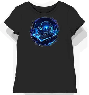 Koszulka damska czarna z motywem błękitnego sprzętu gamingowego XS - Koszulka damska idealna na prezent! KozakNadruki – Polska marka i autorskie projekty! St...