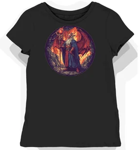 Koszulka damska czarna z motywem czarodzieja i smoka XL - Koszulka damska idealna na prezent! KozakNadruki – Polska marka i autorskie projekty! Stawiając na ...