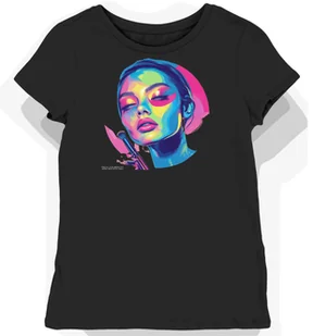 Koszulka damska czarna z motywem elektrycznej kolorowej fantazji XS - Koszulka damska idealna na prezent! KozakNadruki – Polska marka i autorskie projekty! S...