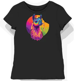 Koszulka damska czarna z motywem kolorowej lamy XXL - Koszulka damska idealna na prezent! KozakNadruki Polska marka i autorskie projekty! Stawiając na Koza...
