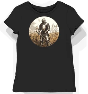 Koszulka damska czarna z motywem rycerskim w srebrnej zbroi L