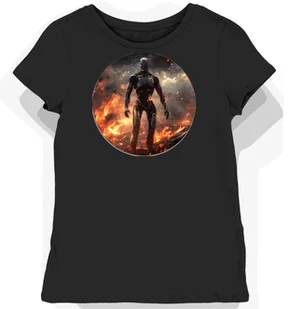 Koszulka damska czarna z motywem srebrnego cyborga przyszłości XS