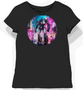 Koszulka damska czarna z motywem srebrnego robota L - Koszulka damska idealna na prezent! KozakNadruki – Polska marka i autorskie projekty! Stawiając na Koza...