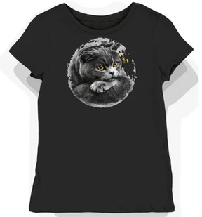 Koszulka damska czarna z motywem szarego kota w blasku M - Koszulka damska idealna na prezent! KozakNadruki – Polska marka i autorskie projekty! Stawiając na...