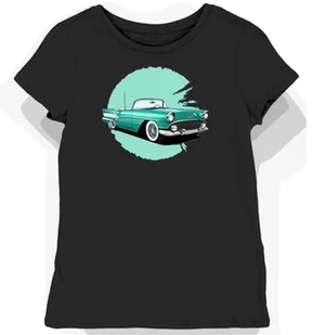 Koszulka damska czarna z motywem turkusowego kabrioletu S - Koszulka damska idealna na prezent! KozakNadruki – Polska marka i autorskie projekty! Stawiając n...