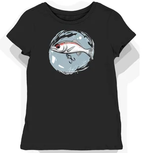 Koszulka damska czarna z motywem wędkarskim białej przynęty M