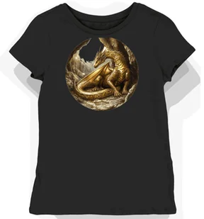 Koszulka damska czarna z motywem złotych smoków XL - Koszulka damska idealna na prezent! KozakNadruki – Polska marka i autorskie projekty! Stawiając na Kozak...