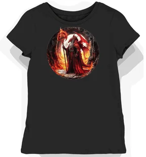 Koszulka damska czarna z nadrukiem czarnoksiężnika i smoka M