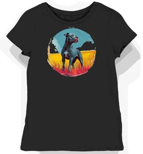 Koszulka damska czarna z nadrukiem muskularnego pitbulla na szarym tle XL